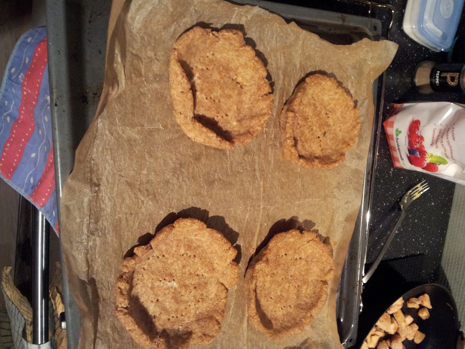 Dermed formet jeg disse som små skåler og stakk de med gaffel for å få de sprøe og igjennom stekt.