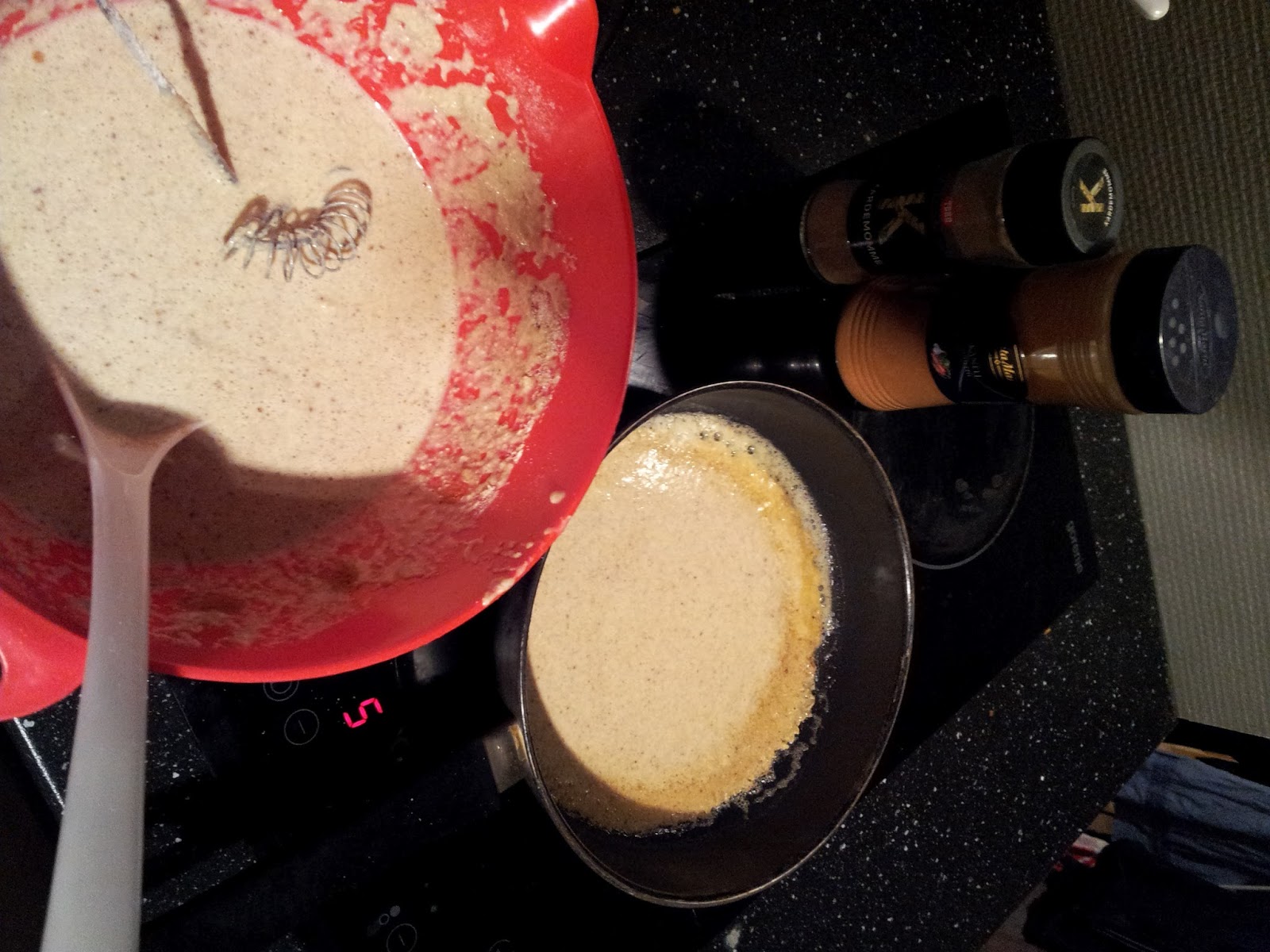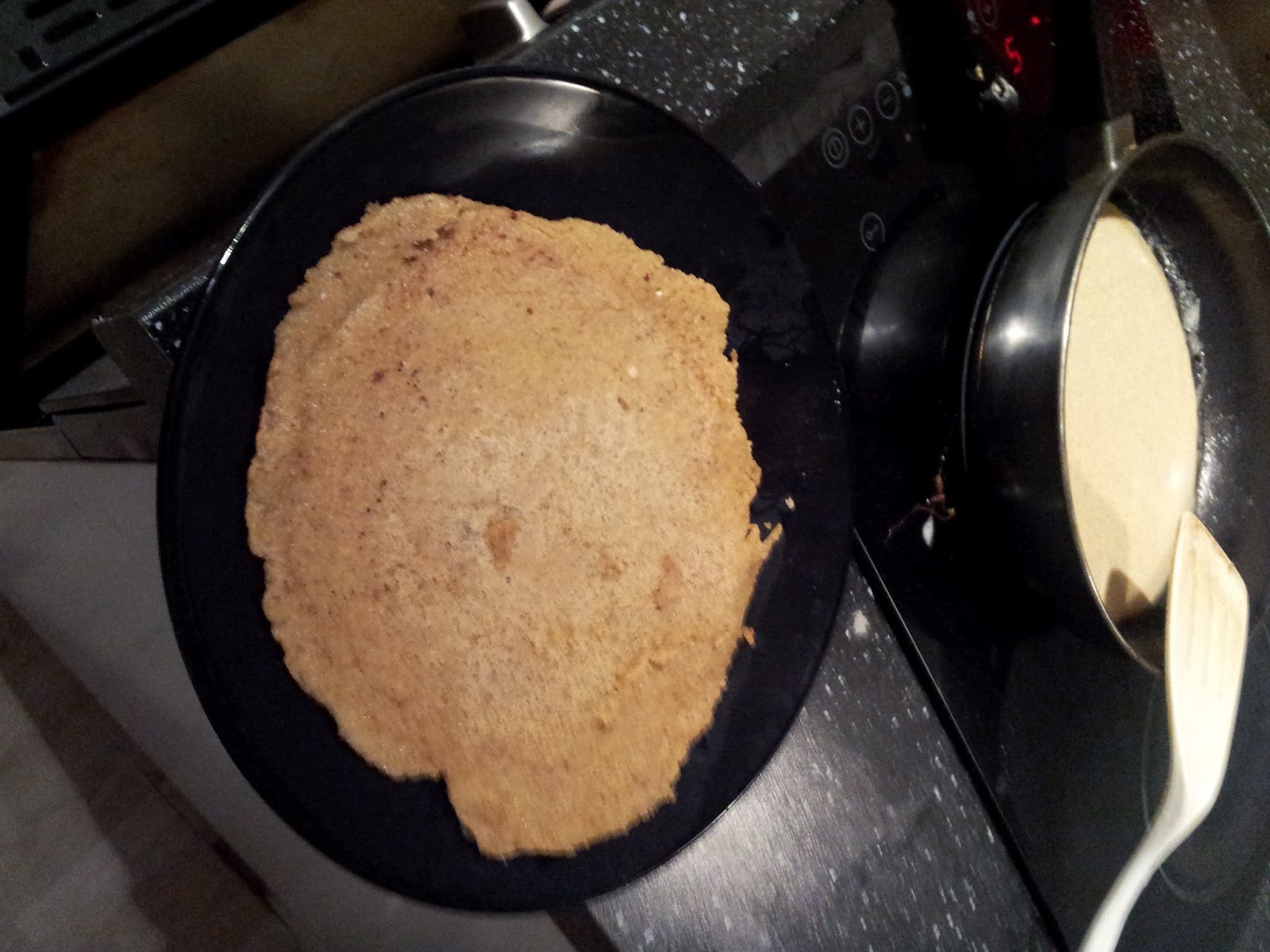 Så fikk jeg plutselig skikkelig lyst på pannekaker, men med litt dårlig samvittighet for at jeg ikke fikk trent, gjorde jeg en vri på oppskriften. (Dette var svært impulsivt. Det må jeg bare si).